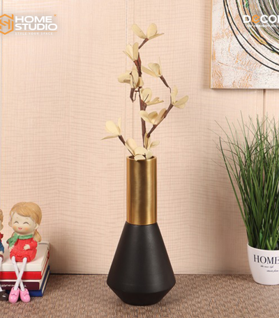 Deidra Brass Vase—a refined blend of Sheesham wood and cast aluminum, redesigned by popular demand. Its seamless wood–metal fusion and elegant finishes make it a timeless décor piece for any modern home. Perfect for adding a touch of silent luxury to your space.
