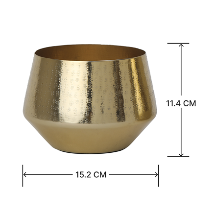 Add a touch of luxury to your home with the Golden Flora Planters, a set of two beautifully designed table planters. Finished in a lustrous gold tone, the upper part of each planter showcases intricate patterns, while the smooth lower half provides subtle contrast, emphasizing the refined design.