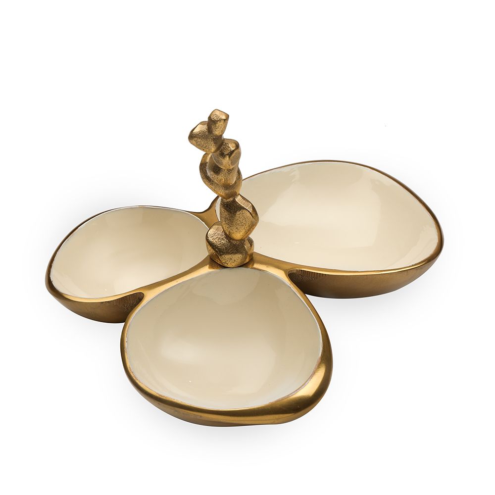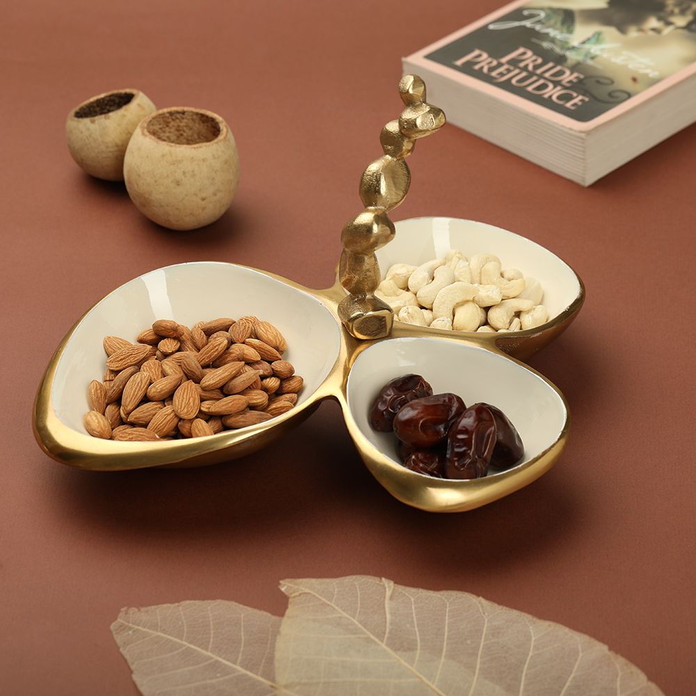 Complete your dining table with this luxurious triple bowl platter and enjoy serving your favorite treats in style.